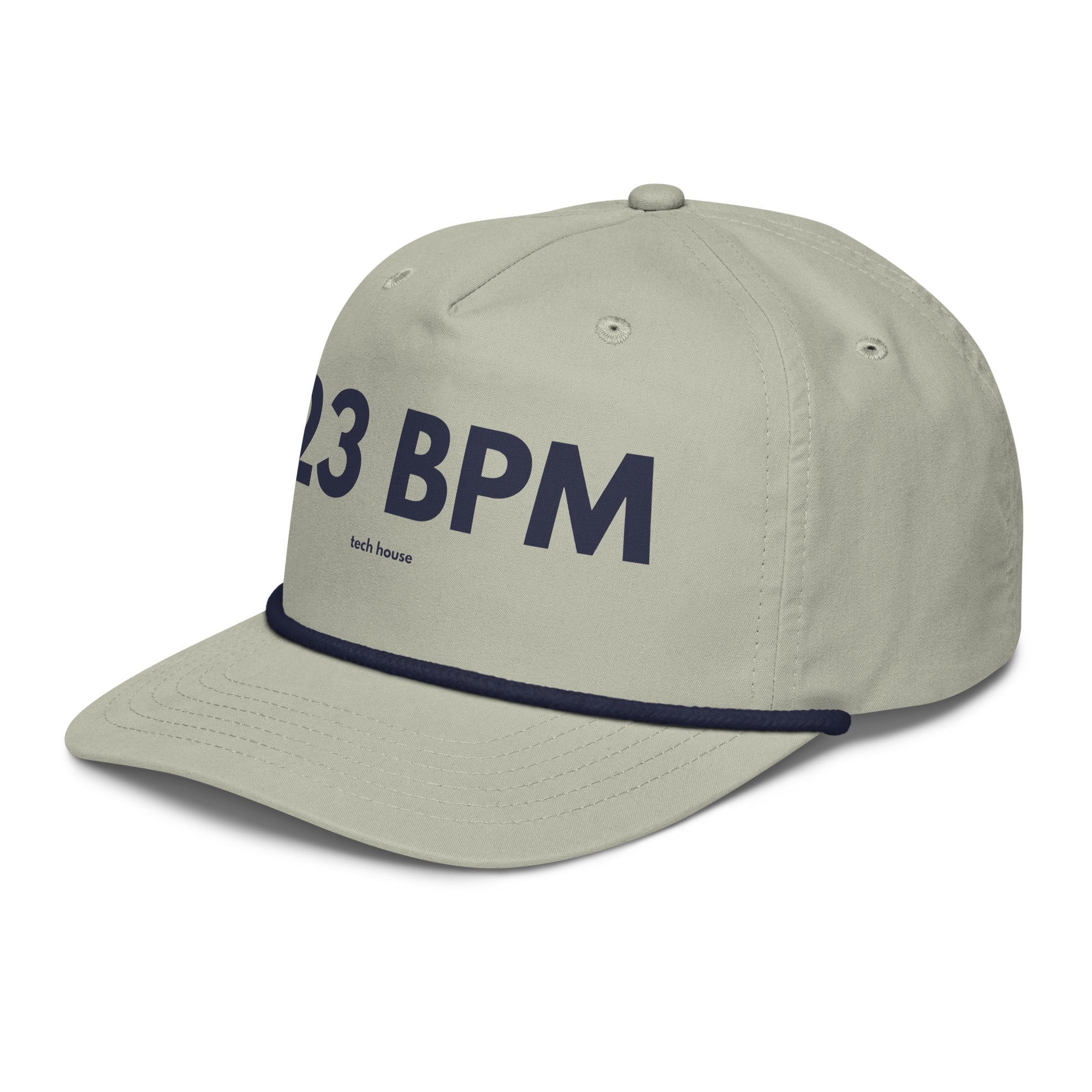 We paired a light grey body with a high-contrast navy rope to create a clean, industrial look that matches the genre's aesthetic. Whether you're in the studio or at the afters, this vintage-style rope hat lets everyone know exactly what frequency you're on.