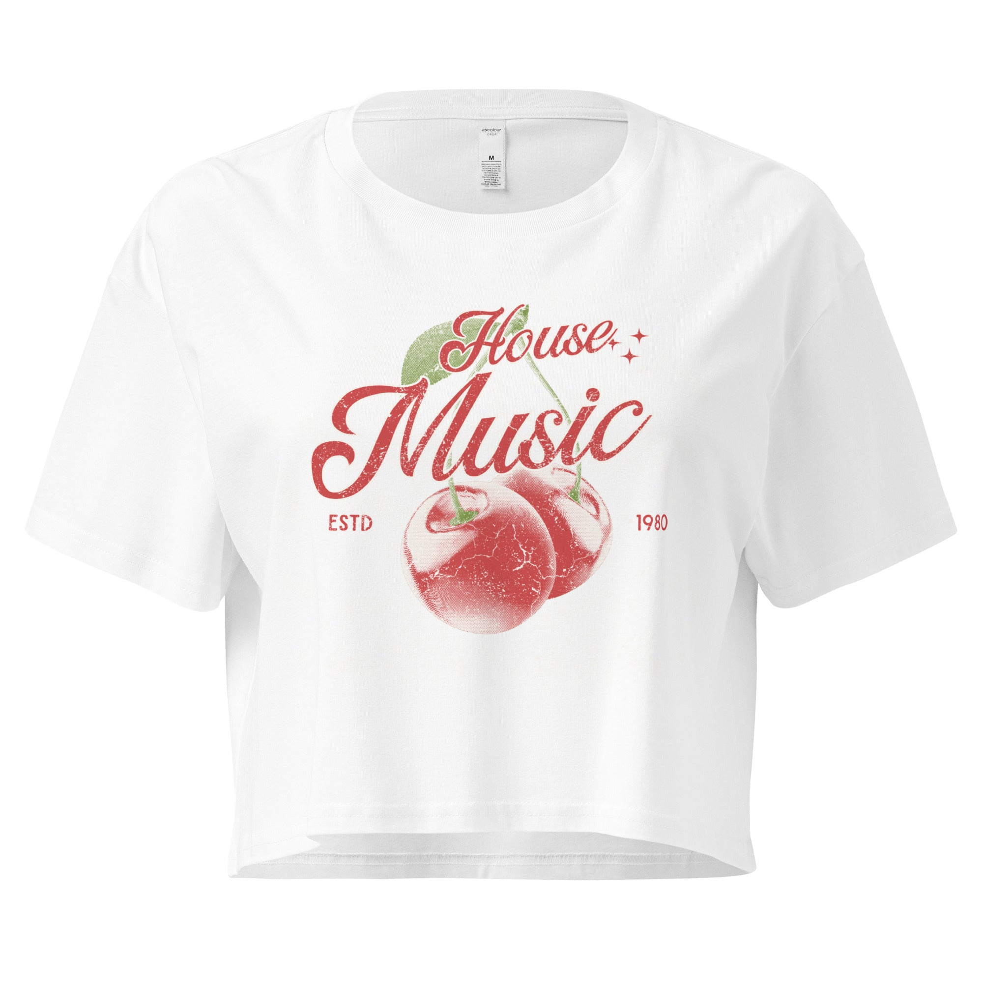 • The Graphic: "House Music" cherry script in vintage red.